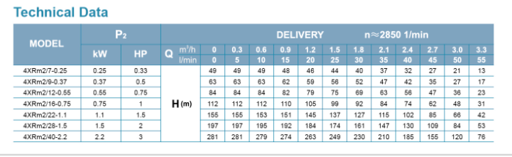 Submersible Borehole Pump 4XR 2/7-0.25